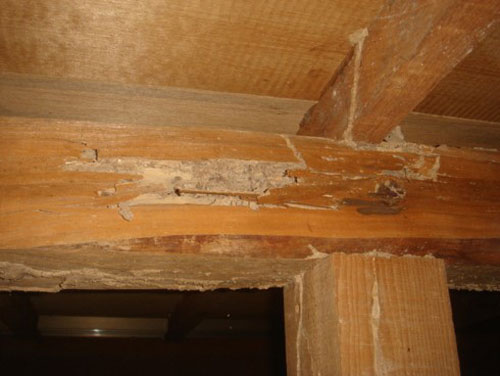 イエシロアリは水を運ぶ事ができるので、普段、湿気の少ない小屋裏や2階にある高い範囲の乾燥した木材にも被害を及ぼし、被害は建物全体に及びますし、被害進行速度も速くなります。