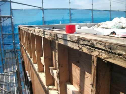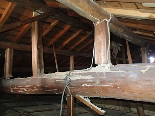 天井裏の被害(漏水によるヤマトシロアリ、イエシロアリ、カンザイシロアリ)