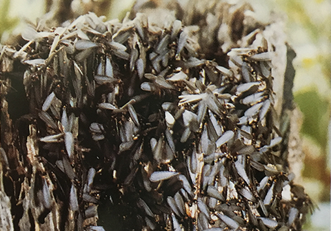イエシロアリは建物や土中に塊状の大きな巣をつくり、普通 数十万匹、大きいものでは100万匹にも達します。