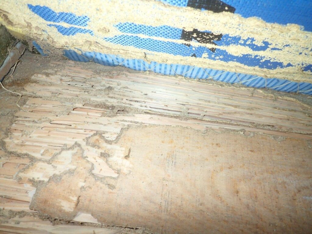 すでに根太(床板を支える木材)にまで被害が進行しており