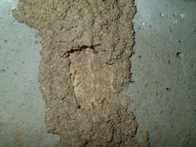 イエシロアリの職蟻が確認できました。今日は誘引処理なので駆除専用の粉剤を吹付ます。