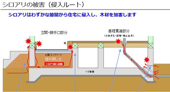 配管の隙間や、基礎建築時の固定金具の隙間等侵入経路となってしまいます