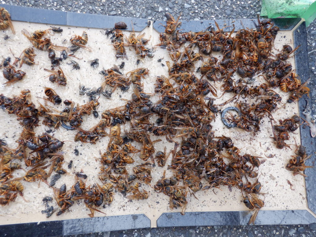 別の角度から確認すると同じ様な大きさの蜂の巣が合計3つ確認されました。