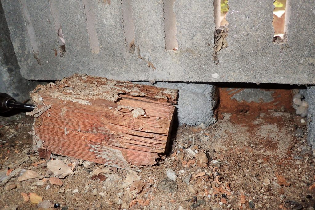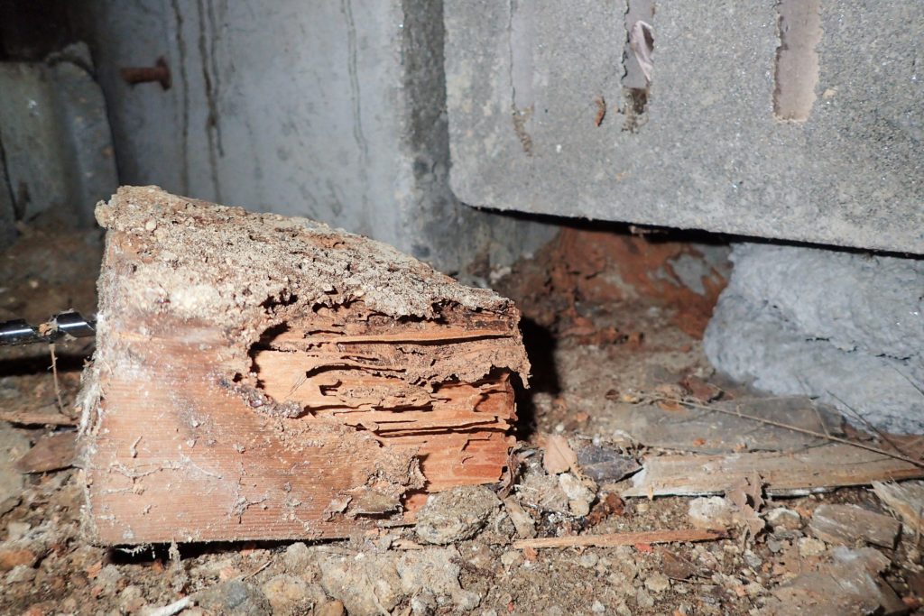 朝の挨拶の後、「ここでシロアリに気付いた!」と連れていかれたのが