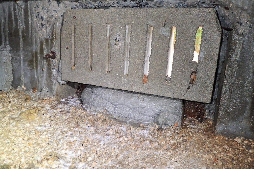 塩ビパイプの切り口に蟻土が詰まってました。これは珍しいです。兵蟻が待ち構えているのが見えます。
