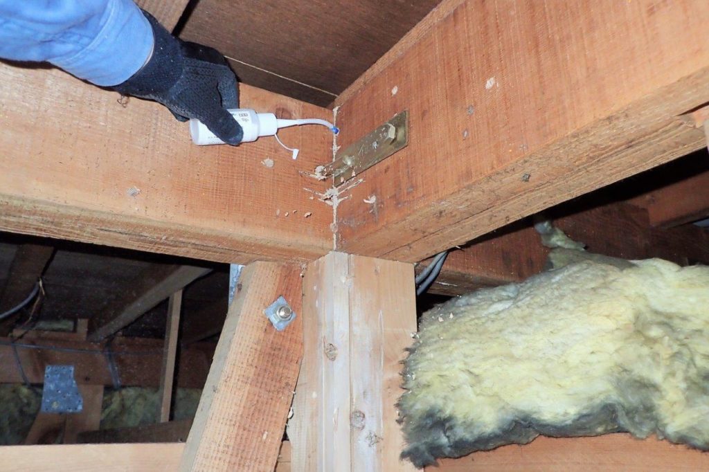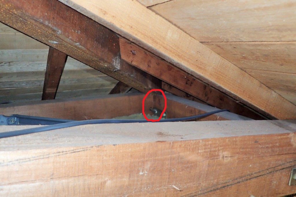 2F小屋裏穿孔が終了後(被害無し)、今度は1F小屋裏に入ります。すると、