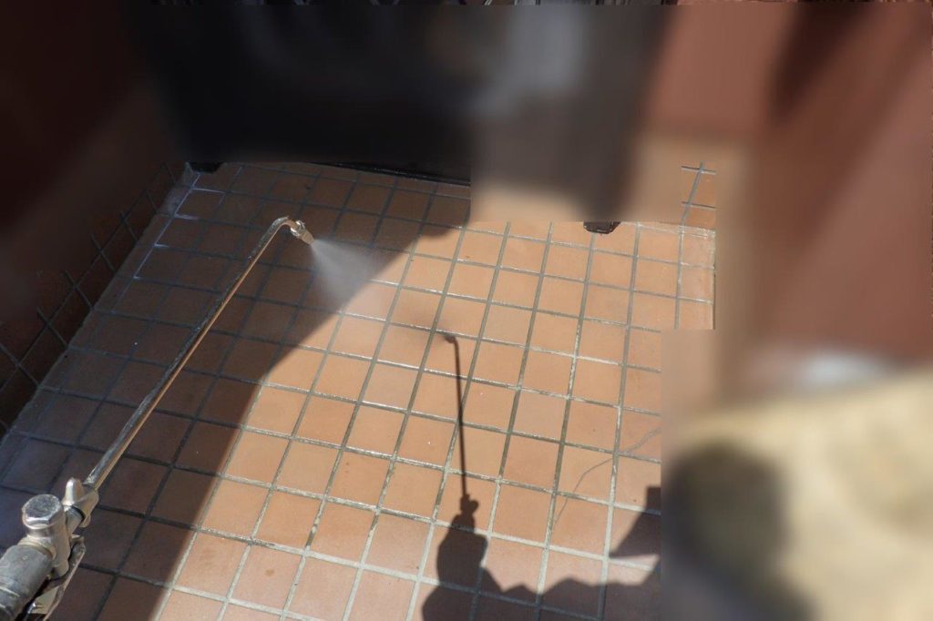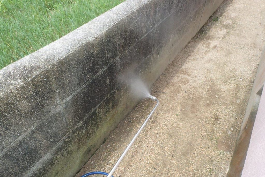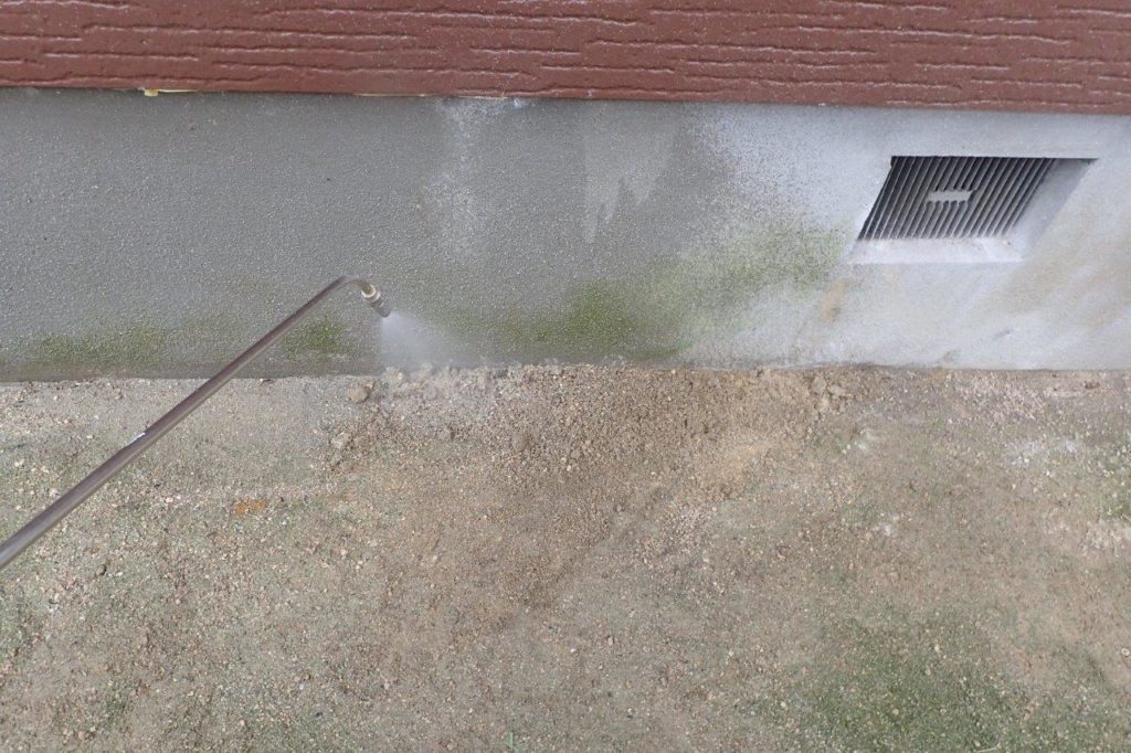 このように壁とその手前の部分をL字型に薬剤を吹き付けていきます。これが基本です。また、