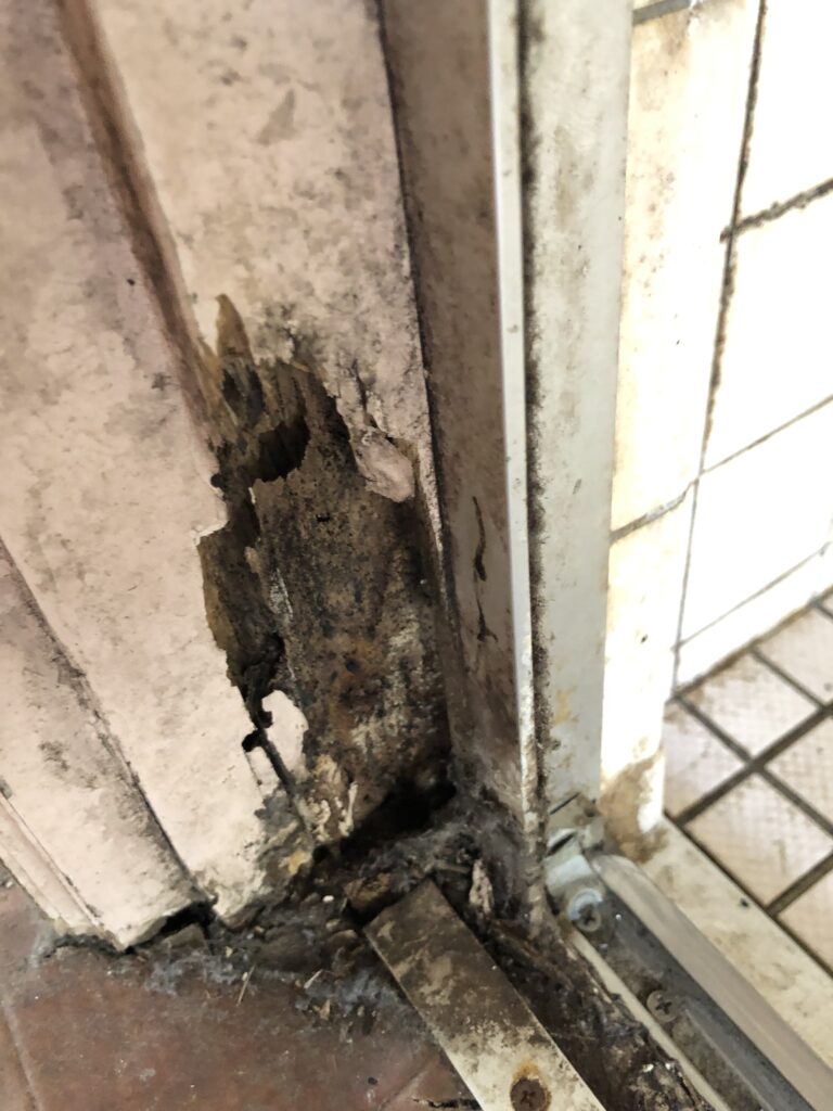 さて、前回はシロアリ発見についてお話しましたが、今回もまた遭遇しましたのでシロアリ発見についてお話しをさせて頂きます。画像は、中古住宅の検査で発見したシロアリの被害を写真に撮ってきたものです。現地は広島の閑静な住宅地です。床下から、日陰部分を伝ってシロアリの被害が発生したのではと予想しています。