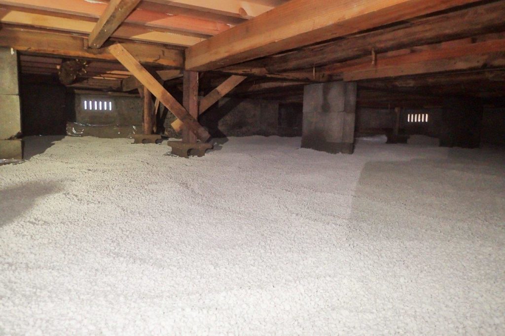 1人作業で52袋を床下で運ぶのは中々の重労働でした。しかし何とか2時間ちょっとで終了。
