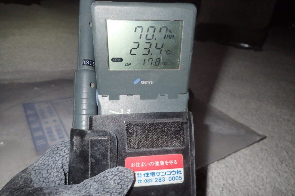 このような結果となりました。床下湿度が【90%→81.2%】と下がりました。そしていよいよ調湿剤敷設です。